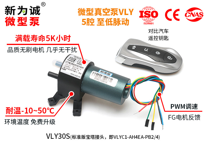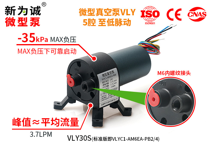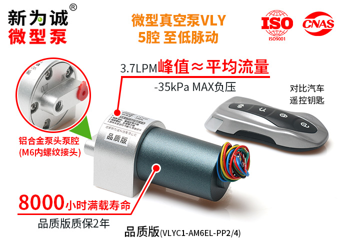 2)VLY系列稳流微型真空泵,可在泵吸气口处于MAX负压时,可靠重启(搭配我司推荐电源下)!